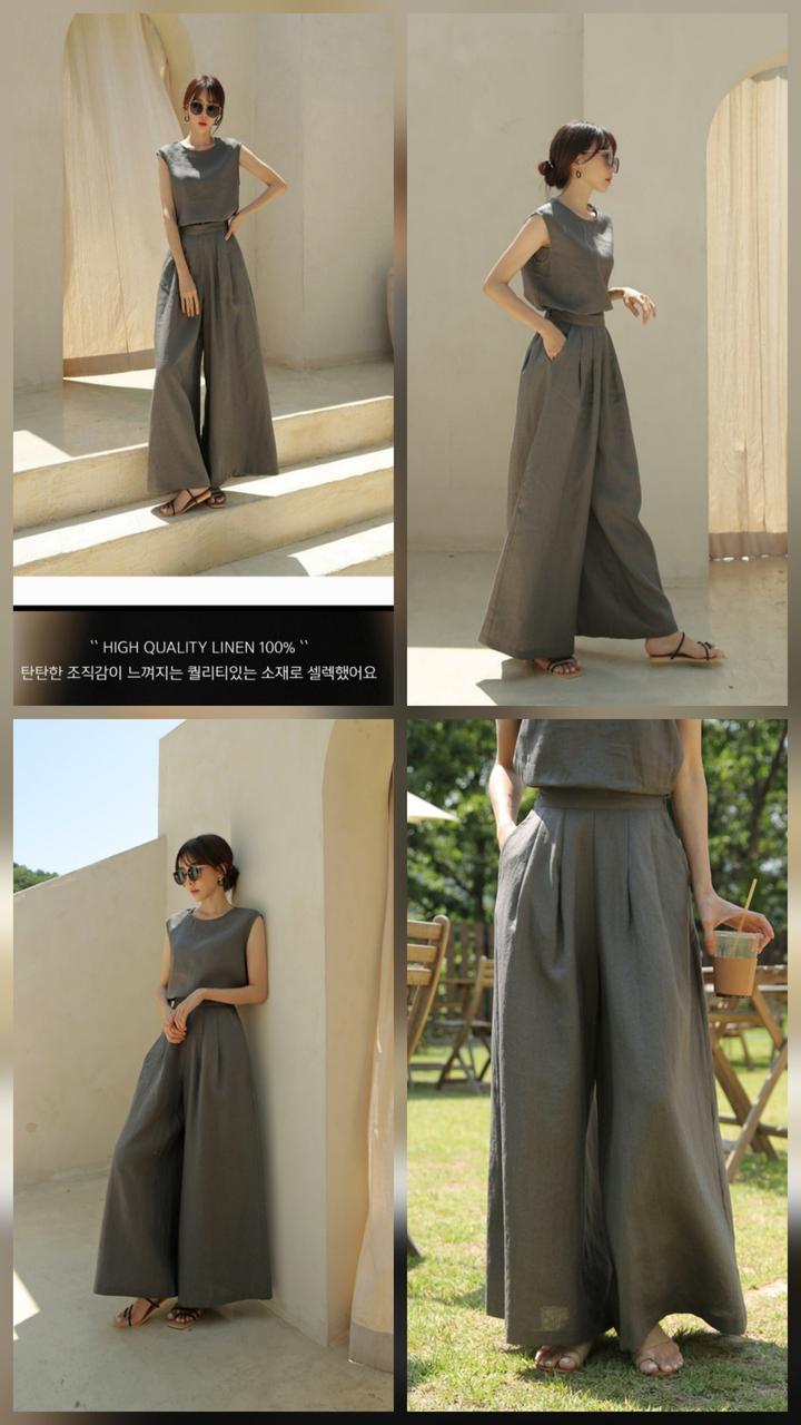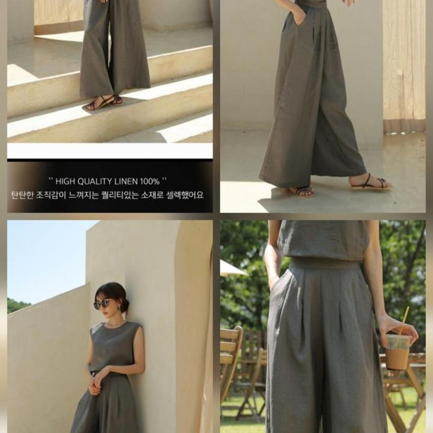 린넨100% 소재 와이드팬츠예요.