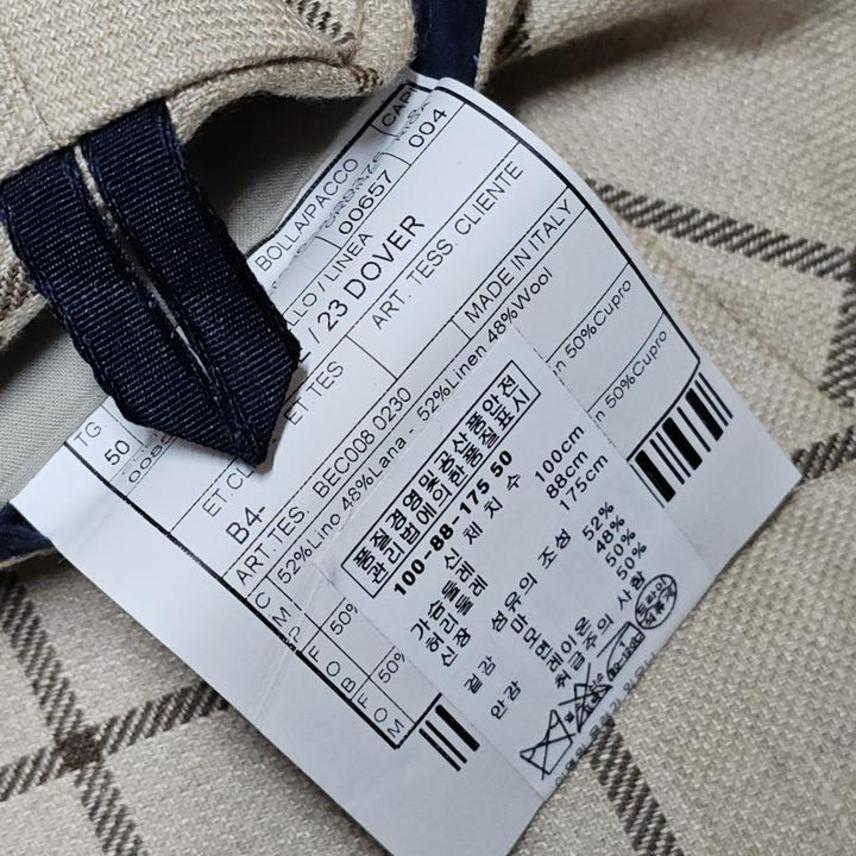 BOGLIOLI/볼리올리/이태리정품/투버튼/뒷트임2/윈도페인체크/시원한마/남성블레이져/언스트럭처드/도버자켓/50(100권장)